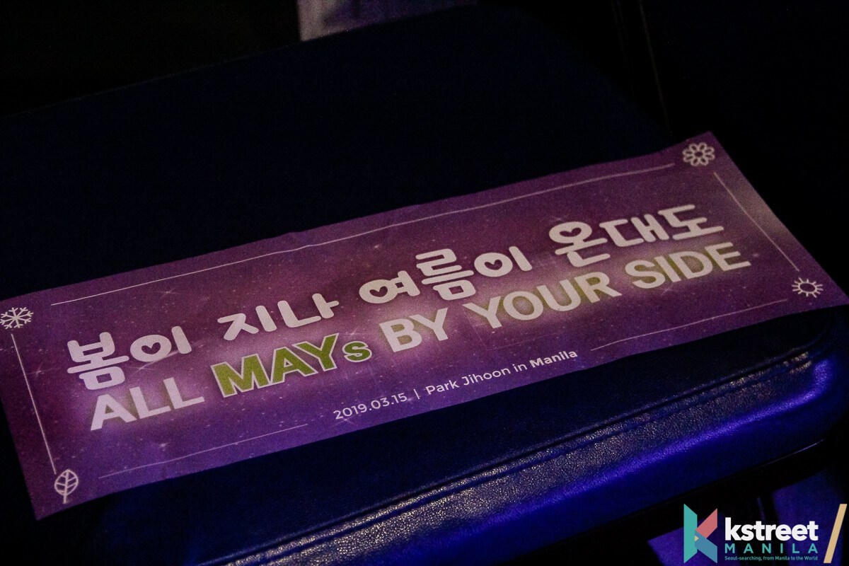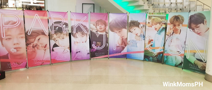 Ten banners, spelling out Park Jihoon's name, with recent photos of him were displayed at the Green Gate entrance of Araneta Center where MAYs can take a picture with.
