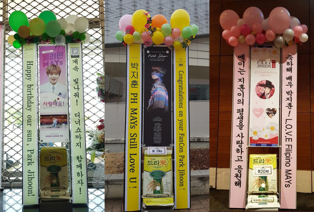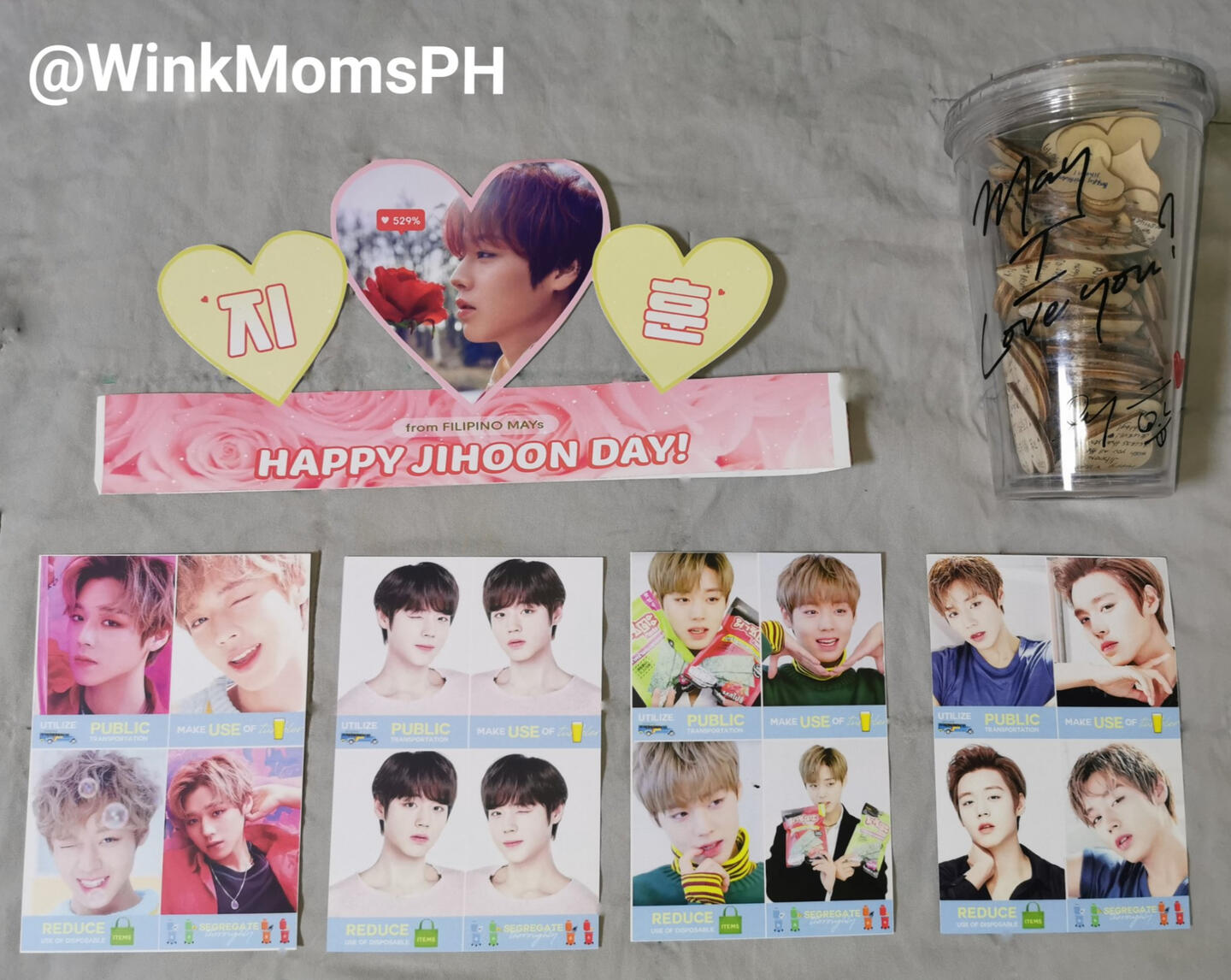 We also sent to PH MAYs' birthday greetings for ParkJihoon along with the bday hat, cards & SOS with L.O.V.E tumbler we had for #HappyJihoonDay party in Flag of Philippines while rice wreath support was sent to Flag of South Korea last May!