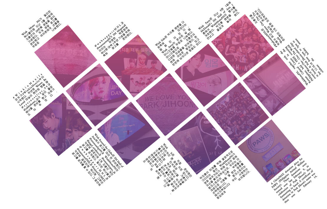 Wink Side was a campaign to choose the left side facing the stage, Park Jihoon’s right, and wear the “윙” shirt. Wink Away was WinkMomsPH flaglets giveaway during concert day showcasing Park Jihoon’s duality – the cute side, (wingkingie) using @oddtrickjh’s photo, and the manly side, (wingop)._